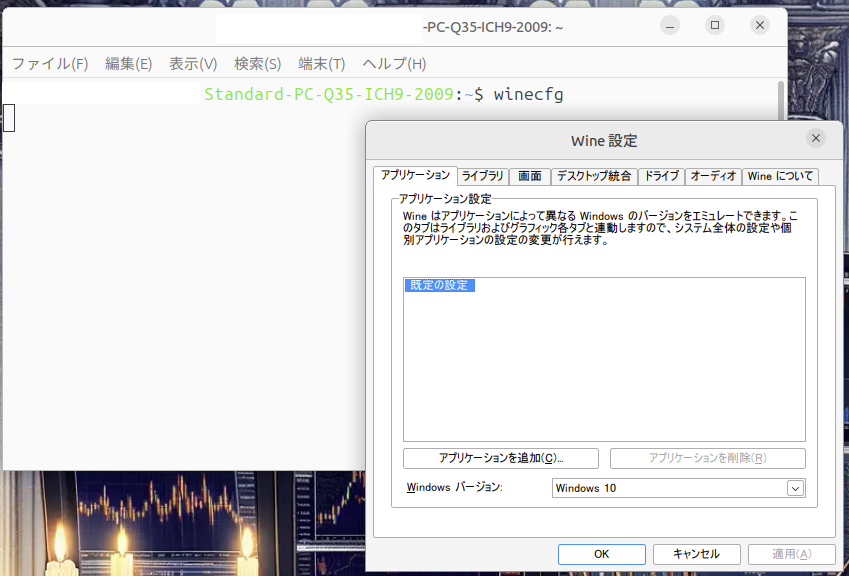 - Launch the Wine configuration tool from the terminal.